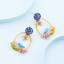 This pair of earrings for women combines a small round shaped hand-carved crystal and a robin standing on golden leaves and flowers. All elements of this piece of jewelry are made in 18 carat gold-plated brass and are hand enameled, respecting Dangerose' pure creation tradition.