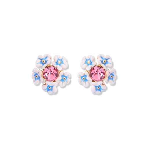 Pink Rose Flower And Stone Enamel Stud Earrings