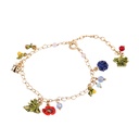 Red Flower Green Leaf Pendant Plant Series Jewelry Enamel Bracelet