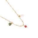 This woman's charm bracelet is made up of a thin chain featuring three charms, a green leave, a red ladybug and a white daisy. All elements of this piece of jewelry are made in 18-carat gold-plated brass and hand enameled, including the chain and its white freshwater pearls and gilded metal pearls. A true Dangerose' creation tradition.