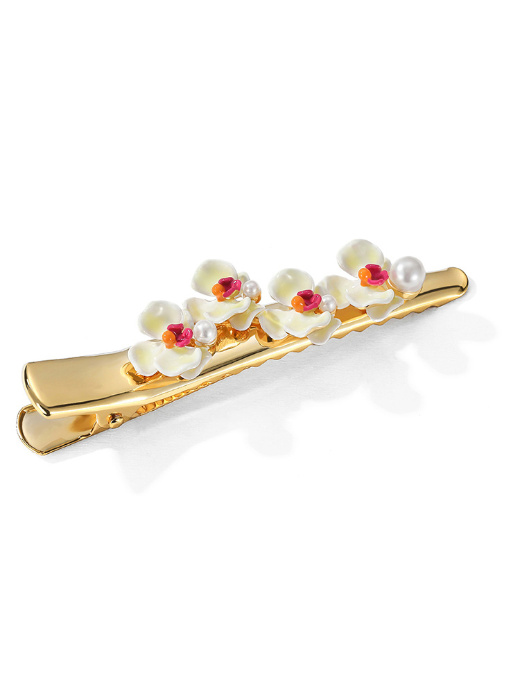 Butterfly Orchid Blossom Flower Pearl Enamel Hair Clip Pin