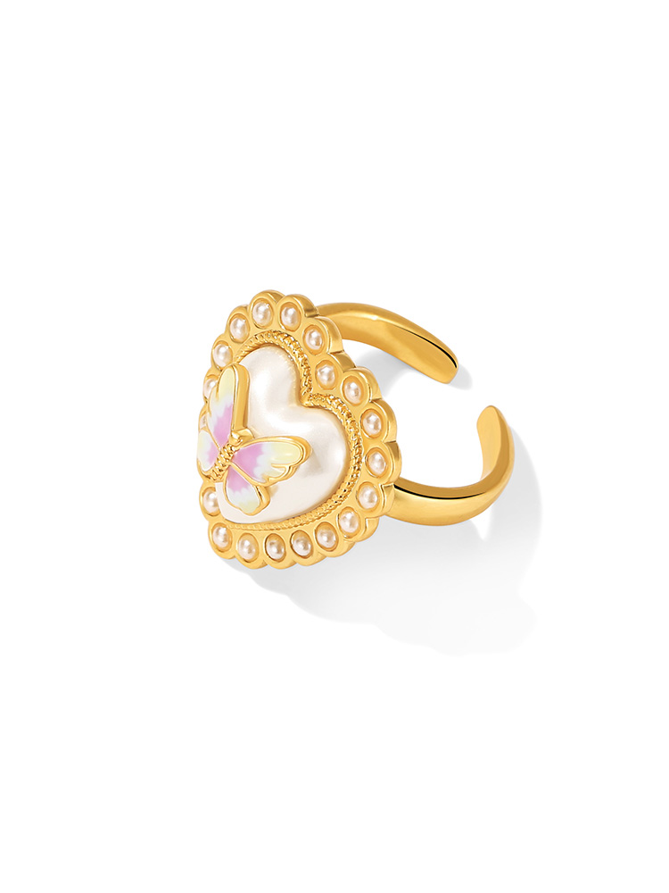 - Butterfly Heart Pearl Enamel Adjustable Ring