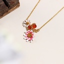 - Red Pink Flower And Zircon Enamel Asymmetrical Stud Earrings