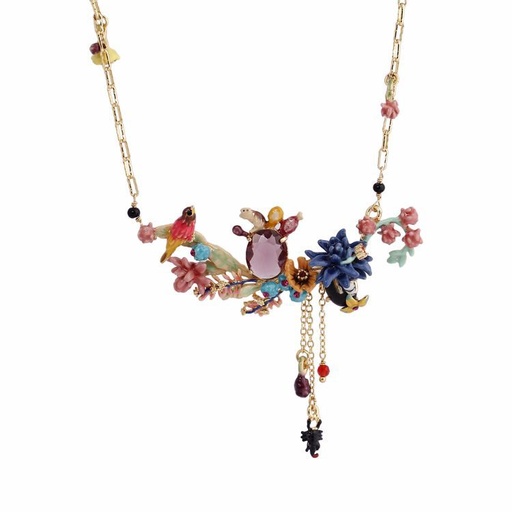 Bird Flower And Fruit Berry Enamel Pendant Necklace