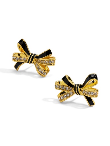 Black Bow And Crystal Enamel Stud Earrings Jewelry Gift