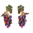 Grapes and Small Leaf Enamel Earrings