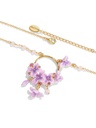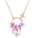 Purple Flower And Gem Enamel Pendant Necklace Handmade Jewelry Gift