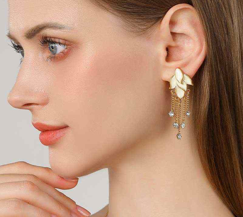 Leaf Shape Elegant Enamel Tassel Stud Earrings