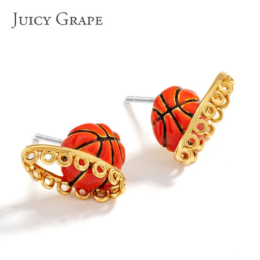 Hand Painted Enamel Glazed Basketball Earrings 925 Silver Needle