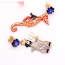 Penguin and Seahorse Enamel Asymmetrical Earrings