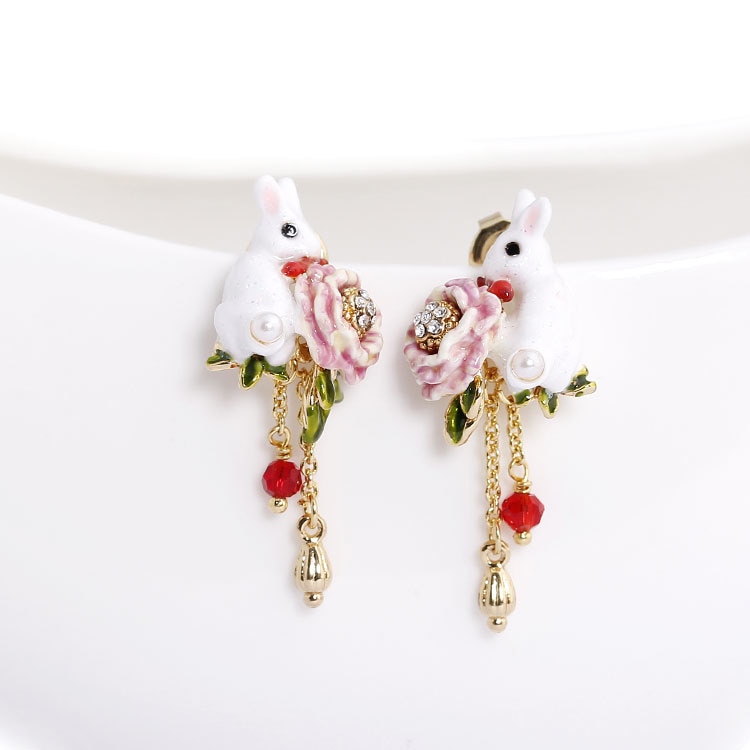 Rabbit Flower Tassel Enamel Earrings