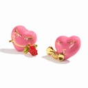Red Pink Blue Heart With Rose Flower And Dumbbell Asymmetrical Enamel Stud Earrings Jewelry Gift